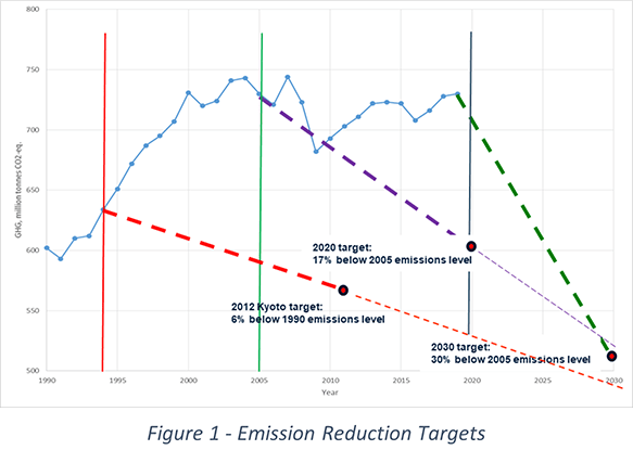i Fossil fuels (liquid petroleum products, natural gas and coal) have been large, inexpensive sources of energy. The first Conference of Parties (COP) Conference, held in Brazil in 1992, recognized the need to reduce emissions. At that time, 87% of global energy was provided by the combustion of fossil fuels. In 2020, after 28 years of initiatives, target setting and talking, 83% of global energy is still reliant on fossil fuel. Even Germany, with large investments in renewable energy, reduced reliance only to 78% of its total energy supply. Figure 1 shows targets set by Kyoto, Paris and now the COP Conference held last year in Scotland. Progress is minimal, and each target shows a steeper requirement to achieve the proposed target. Currently used concepts are failing to meet the projected and agreed upon targets. There must be a better way forward.