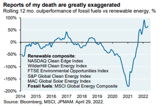 A subsequent graph in the same paper showed a ratio in the stocks of clean energy vs oil and gas companies. This appears to reflect is a transition that is taking place with some of the oil and gas companies. European companies (Shell, Total and BP) appear to be in the process of converting from Oil and Gas to energy companies and the results are interesting. Shell has announced plans to be a major electrical utility and made significant advances in EV charging, as well as clean electricity sales. Transitions of this type reflect a realization of reality and a commitment of major industries to change course.
